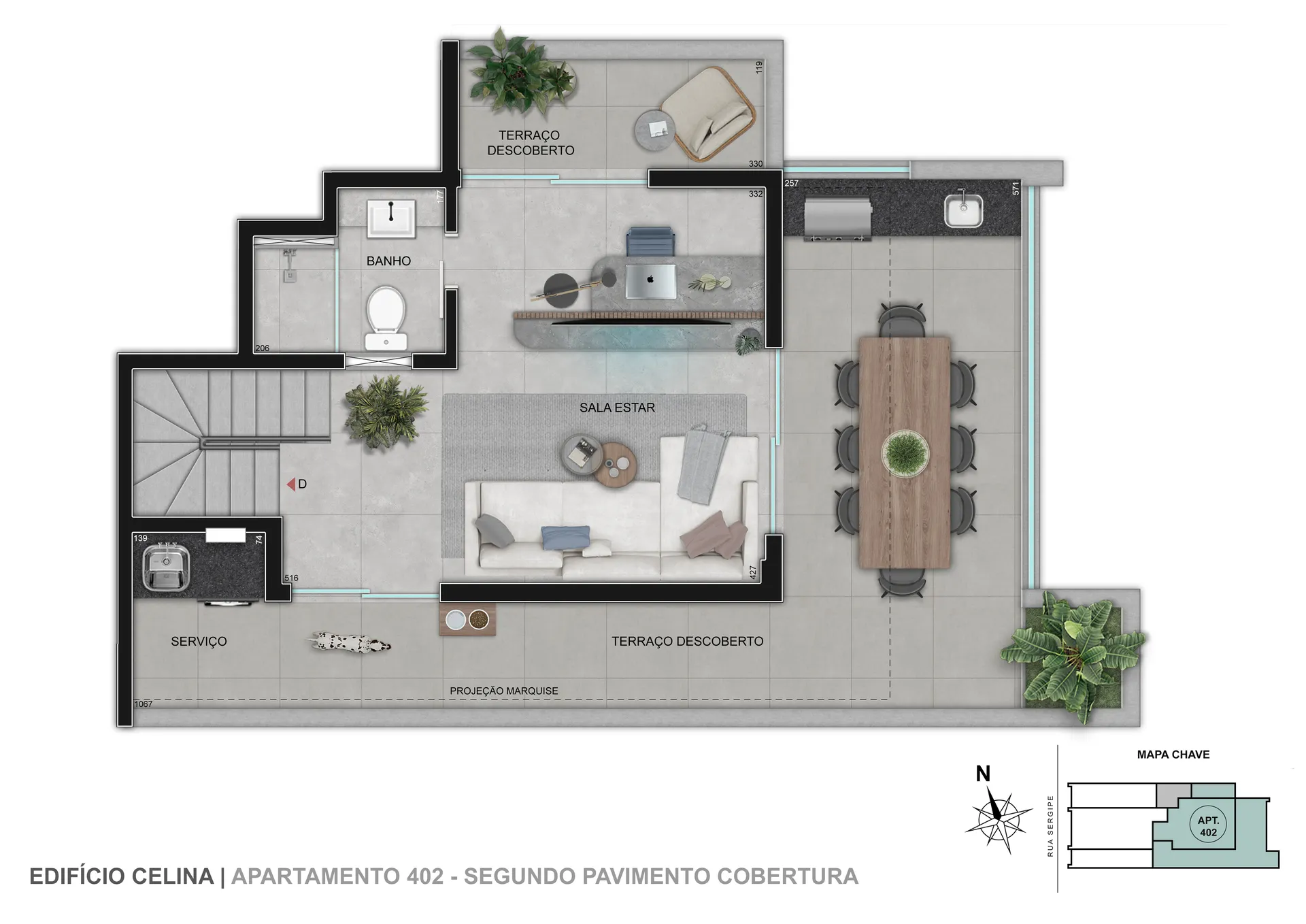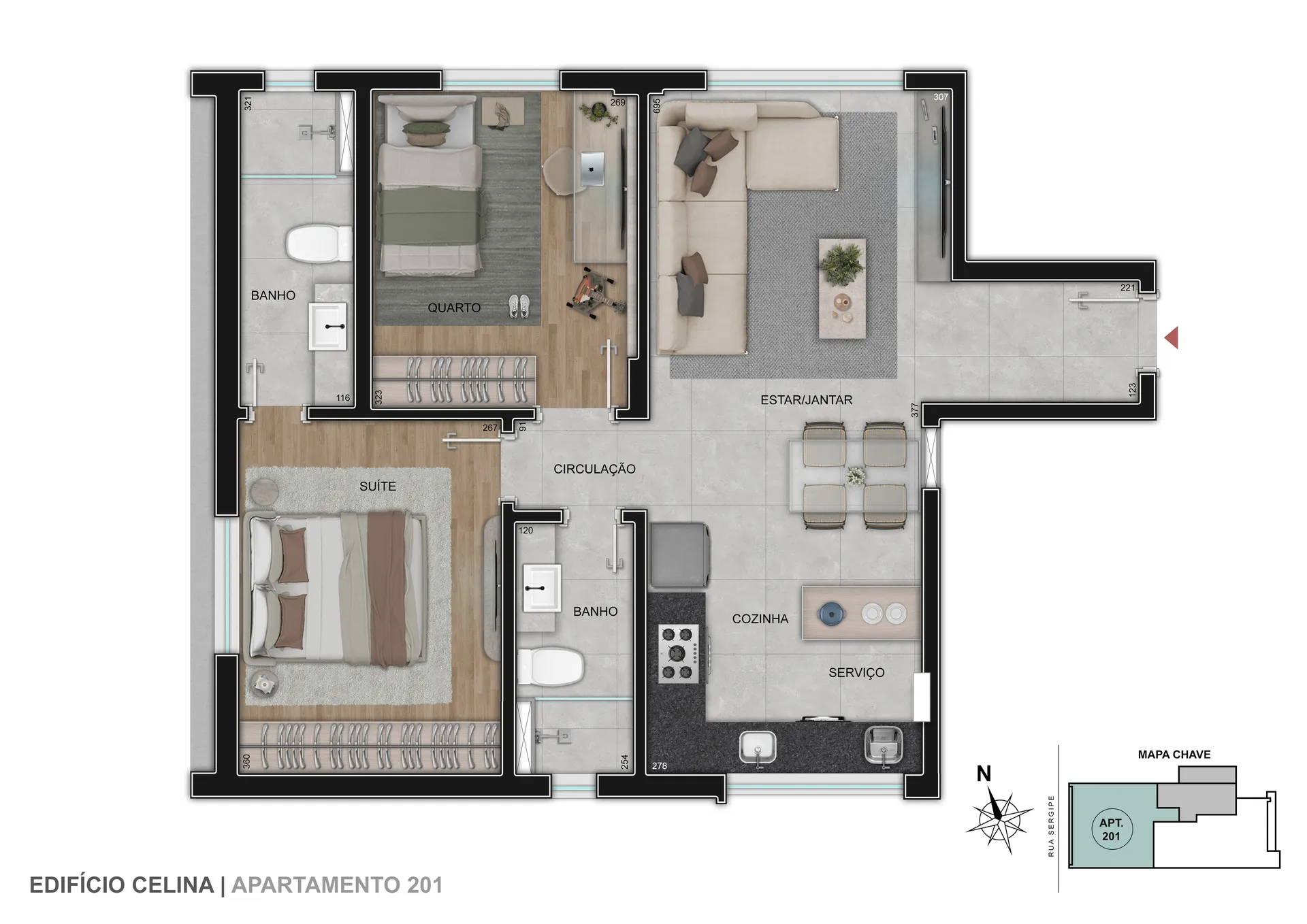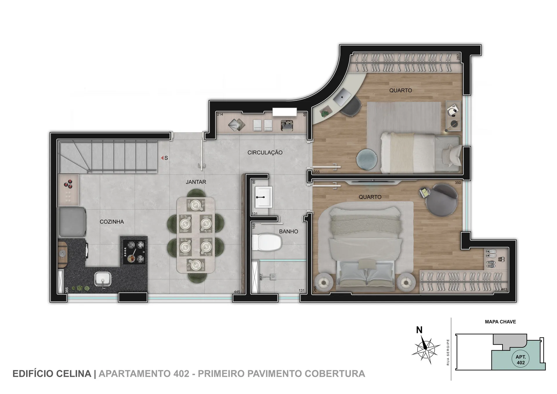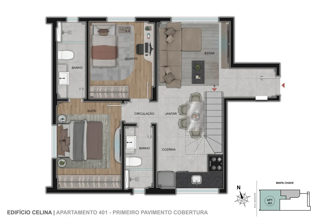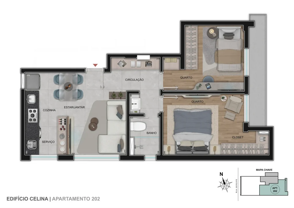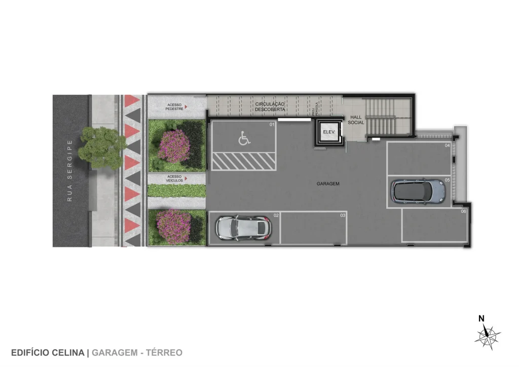 O Edifício Celina é um condomínio econômico com torre única e conta com 6 unidades de 1, 2 ou 3 quartos com até 2 vagas de garagem. Opções com suíte e terraço descoberto.