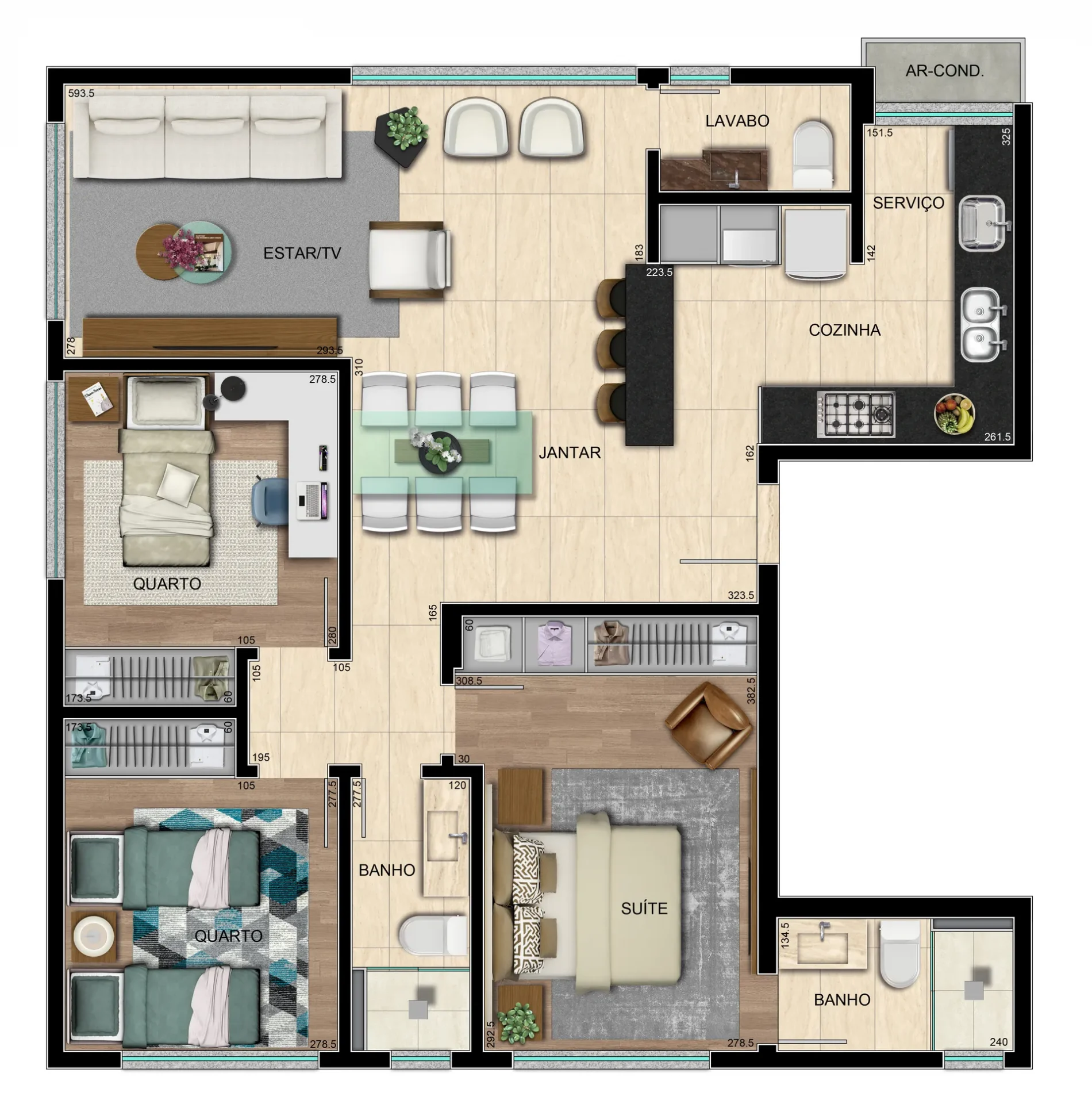 Opções de 2 e 3 quartos